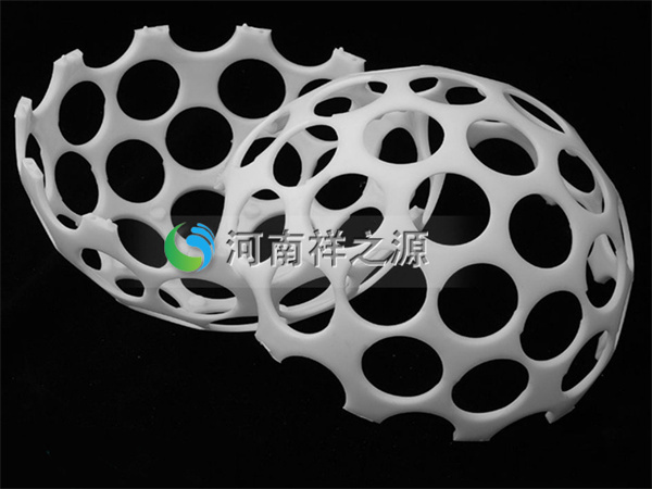 ABS絮凝反應(yīng)球又稱微渦流絮凝器,外觀光滑,無(wú)毛刺,內(nèi)部中空,表面多孔。它是一種空心球,用于絮凝反應(yīng)過(guò)程中干擾水流,形成微漩渦,增強(qiáng)絮凝效果。它由兩個(gè)完全相同的半球殼組成,在切平面邊緣通過(guò)爪和加強(qiáng)筋相互連接。半球殼由經(jīng)向筋條和緯向筋條組成。經(jīng)向筋條和緯向筋條形成穿孔以提供水道。微蝸旋流絮凝球在水中浮動(dòng)或旋轉(zhuǎn),不易堵塞,便于取出清理維護(hù)。由于水流經(jīng)過(guò)兩次連續(xù)切割和擾動(dòng)后在短時(shí)間內(nèi)流過(guò),與平面網(wǎng)格擾動(dòng)裝置相比,可以降低產(chǎn)生大量微渦所需的水流速度,從而縮短水流距離,提高絮凝池的有效容積或減少絮凝劑的用量,獲得良好的絮凝效果。同時(shí),本實(shí)用新型使用方便,成本低廉,克服了平面網(wǎng)格需要固定裝置或固定措施,增加絮凝池或絮凝器結(jié)構(gòu)復(fù)雜的缺點(diǎn)。