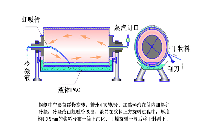 自然沉淀型聚合氯化鋁生產工藝:液態原料→自然沉降→滾筒干燥→成品