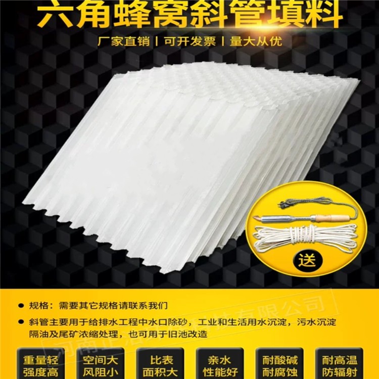 蜂窩斜管填料濕周大,水力半徑小,層流狀態好,顆粒沉降不受紊流干擾!‘敺涓C斜管填料管長為一米時,有效負荷按3-5//.時設計。VO控制在2.5-3.0毫米/秒范圍內,出水水質較佳。 在取水口采用玻璃鋼蜂窩斜管,管長2.0-3.0米時,可在50-100公斤/3泥沙含量的高濁度中安全運行處理。